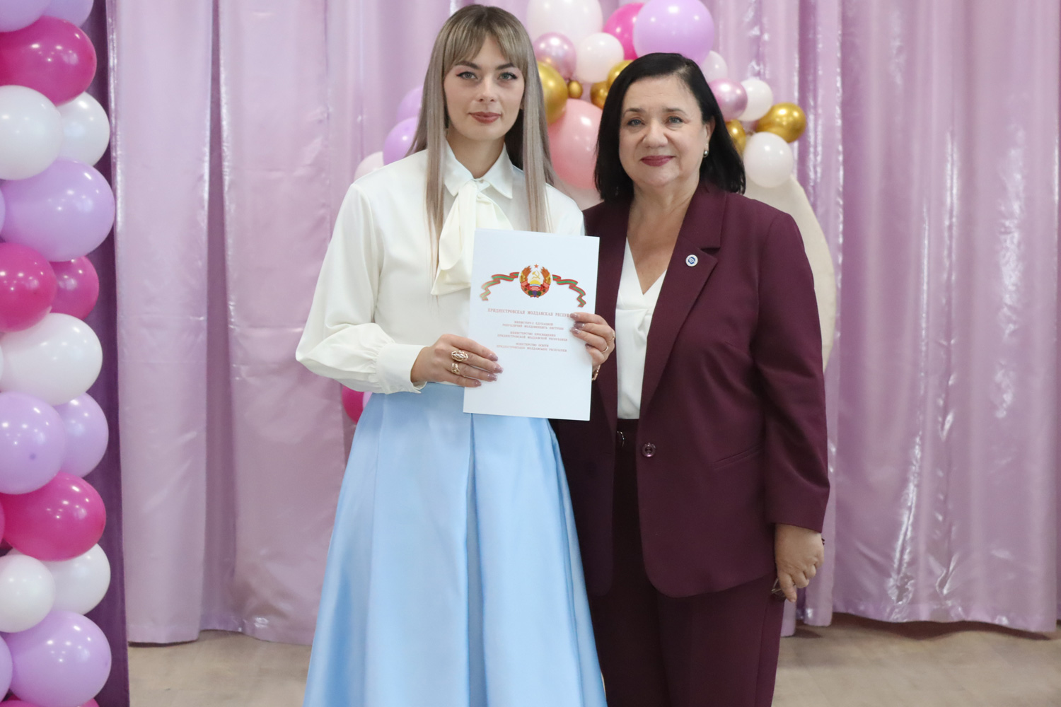Галина Михайловна передала Светлане Завтур приветственный адрес Председателя Верховного Совета ПМР.