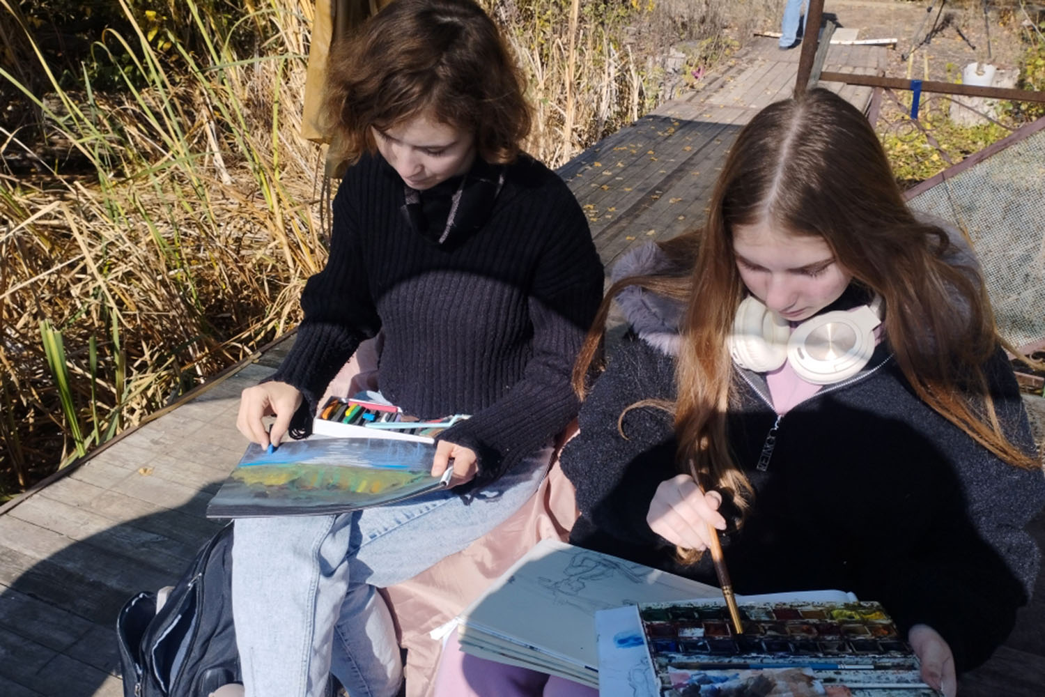 «Здесь очень уютно и спокойно. Нам повезло с погодой. Пейзаж просто шикарный. Умиротворяющая атмосфера: рыбки плавают, птички поют. Всё это вдохновляет на создание хорошей творческой работы».