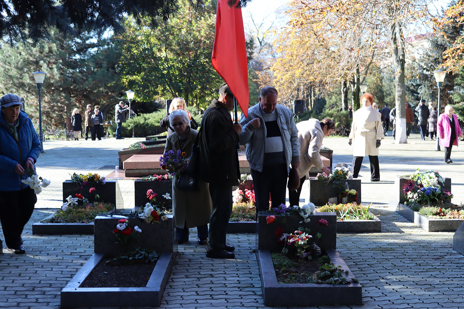 Участники церемонии почтили память павших героев минутой молчания. Дубоссарцы возложили живые цветы к памятным плитам и к памятнику советскому солдату.