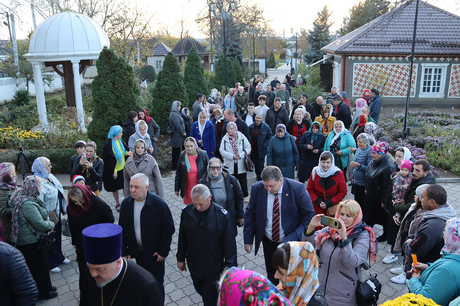 В собор был доставлен большой мощевик с частицами мощей святых угодников Божиих. Богослужение прошло в преддверии Дня города Дубоссары и дня памяти преподобной Параскевы Сербской.