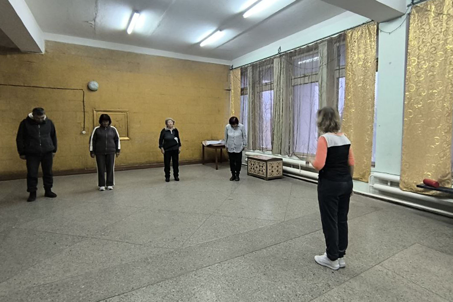 Несмотря на то что участников было немного, атмосфера на встрече была по-настоящему тёплой и дружеской. Под спокойную музыку с улыбками на лицах присутствующие выполняли упражнения, укрепляющие мышцы, улучшающие подвижность и настроение.