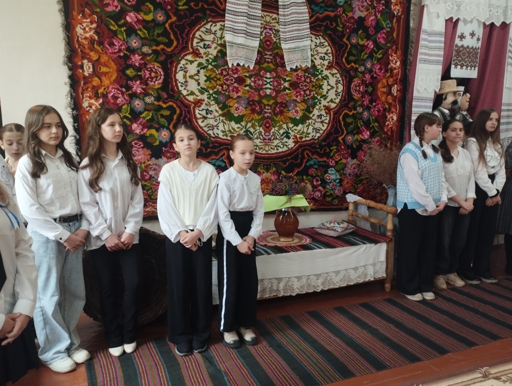 Рядом, на стене, висит большой молдавский ковёр ручной работы. Ему также немало лет. Здесь же старинная кровать, подушки, полотенца, или, как называют их молдаване, «просоапе». То есть это настоящий уголок культуры и традиций молдавского народа. Здесь часто проводятся различные методобъединения, лектории районного и республиканского уровня.