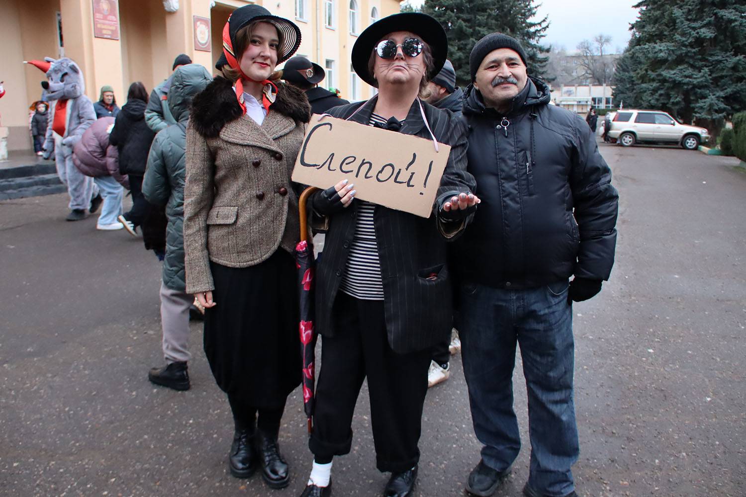 На центральной дубоссарской новогодней ёлке зажгли огни. Праздник начался с шествия сказочных персонажей от музыкальной школы по улице Советской, парад прошел к центру города. Кого здесь только не было: Баба Яга, Кащей, Звездочёт, зайчики, Деды Морозы и Снегурочки.