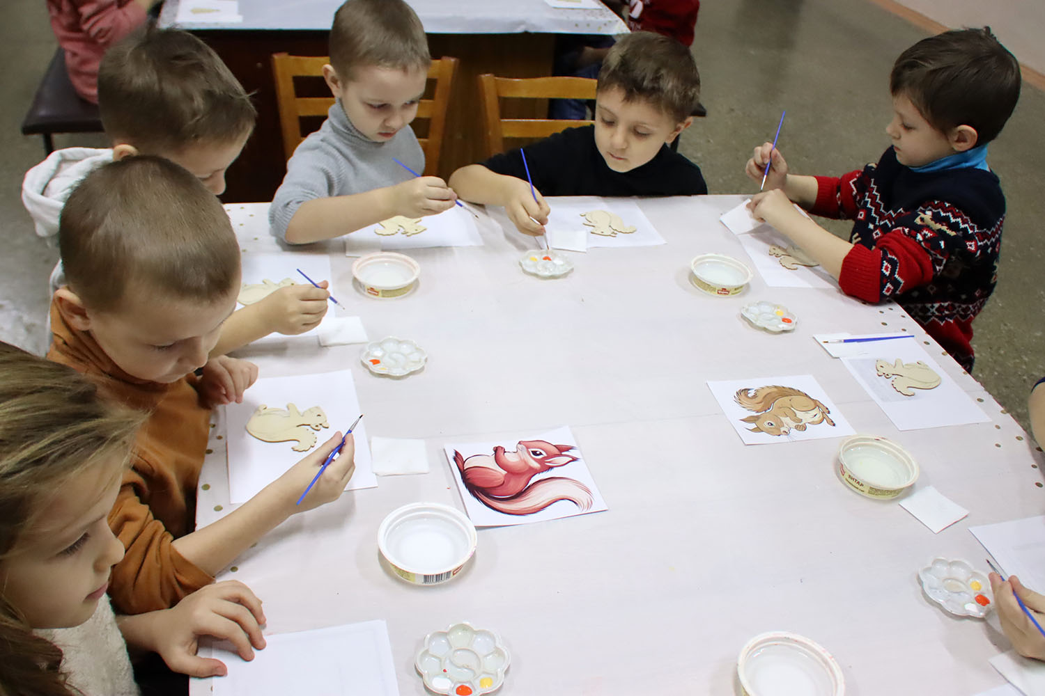В этот день ребята расписывали новогодние елочки, белочки и белочки с орешками. В завершение каждого мероприятия юные участники получают сувениры. На этот раз — снежинки, ведь подготовка к празднику идёт полным ходом.
