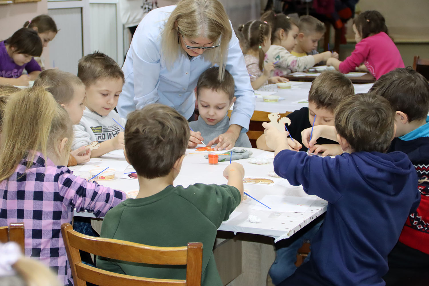 «Мы занимаемся с ребятами творчеством в разных направлениях. Сегодня дети расписывают деревянные фигурки, которые можно использовать как ёлочные игрушки. Они своими руками украшают изделия, и у каждого получается своя неповторимая поделка. Это станет для них небольшим сувениром к наступающему Новому году».