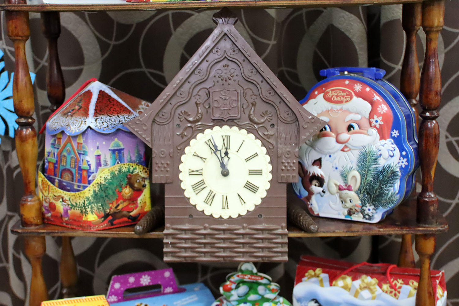 «Казалось бы, тема знакомая, игрушки похожие, но мы каждый раз оформляем выставку по-новому, и детям всегда интересно. Сегодня в экспозиции представлено более 200 новогодних экспонатов. Среди них — старинные ёлочные игрушки, предметы с советской символикой 15 республик бывшего СССР, а также коллекция самодельных украшений из пластилина, бумаги, картона и пластмассы».