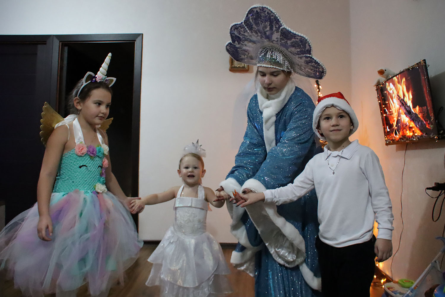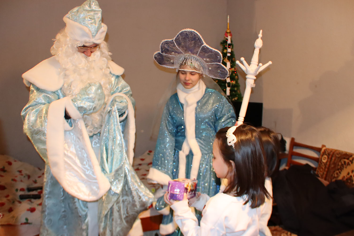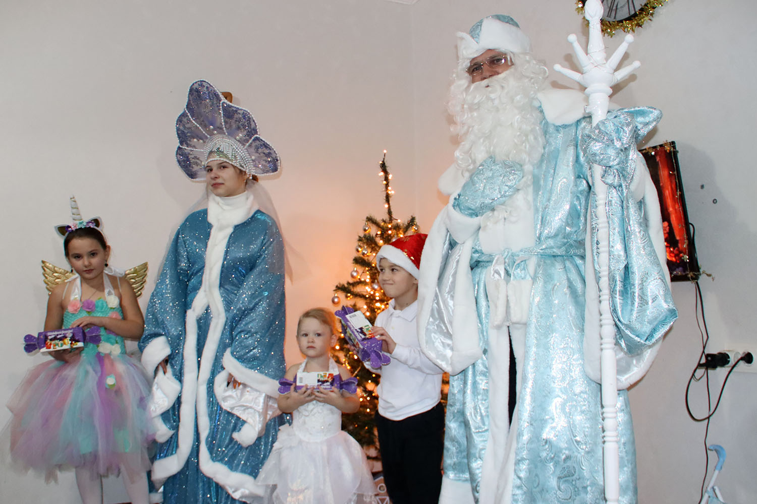 В гости к многодетным семьям пришли Дед Мороз и Снегурочка — в их роли сотрудники управления культуры. Вместе с новогодними волшебниками малыши пели песни, рассказывали стихи и загадывали самые заветные желания.