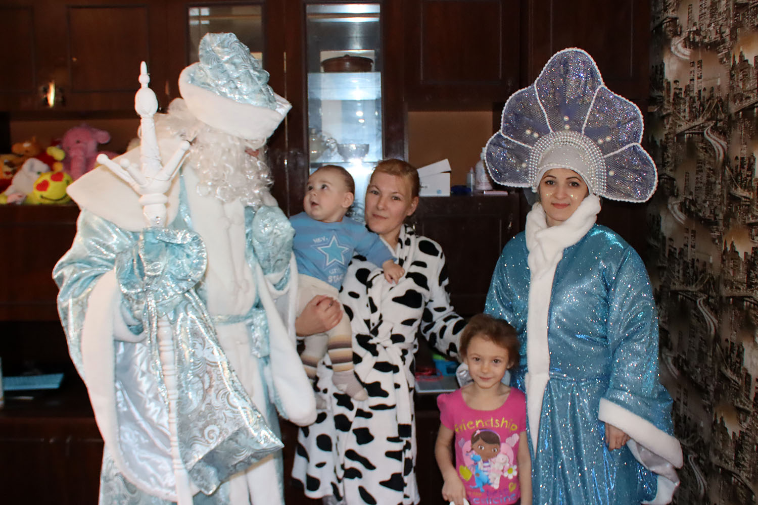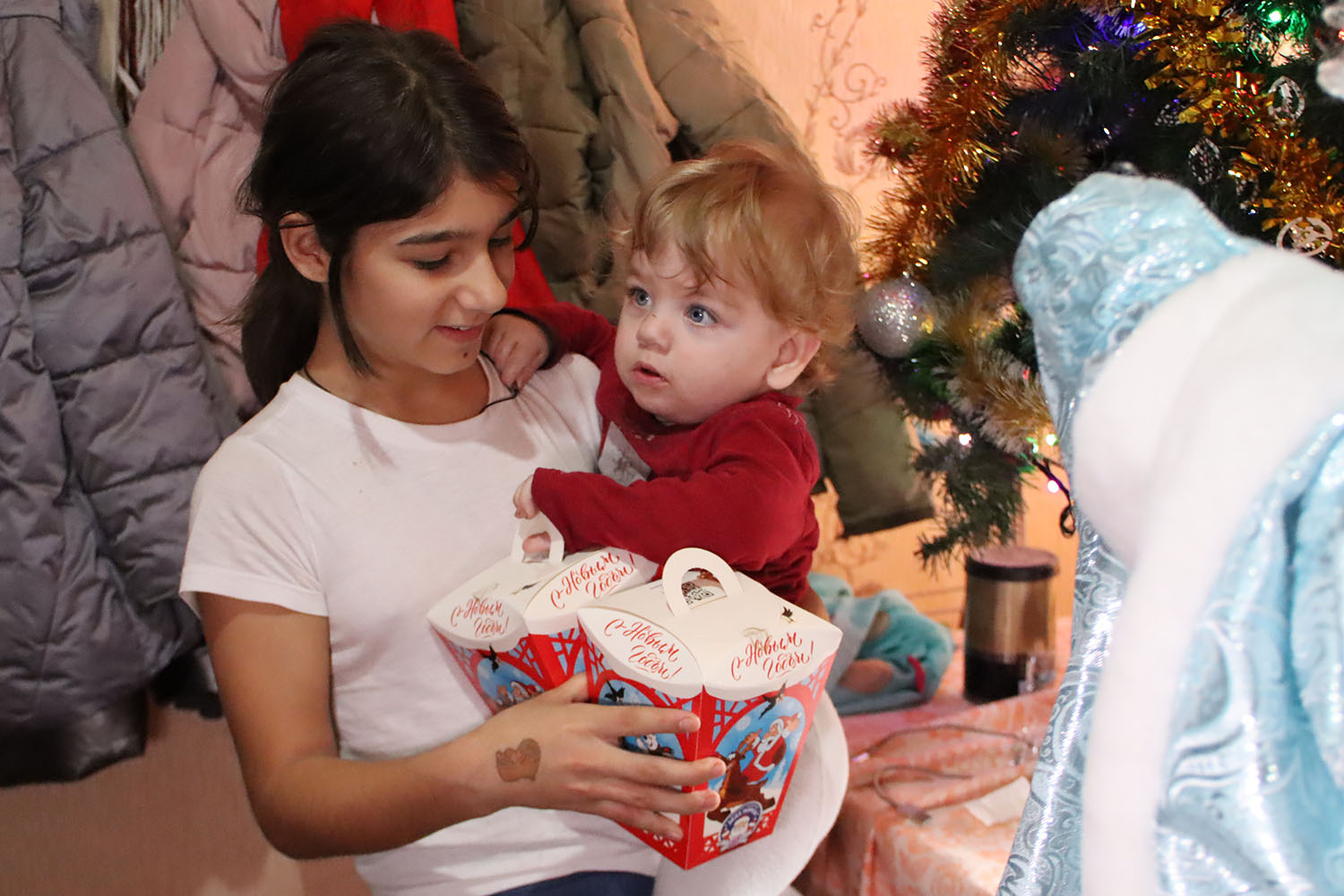 Подарки сегодня получила семья Дубчак. Мама Елена одна воспитывает троих детей. Семья проживает в съёмной квартире. Елена работает на птицефабрике и получает детские пособия. Признается, что справляться одной непросто: