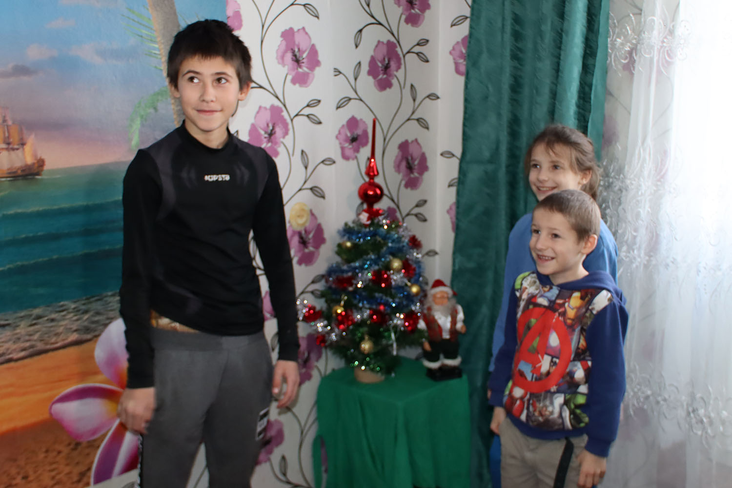 Сегодня помощь получили три многодетные семьи. Одна из них —  семья Семерник, в которой воспитываются четверо детей: Артём, Ангелина, Виталина и Никита. Во время визита старшие дети находились в школе, дома были младшие вместе с мамой. Виталина прочитала гостям стихотворение, был и хоровод.