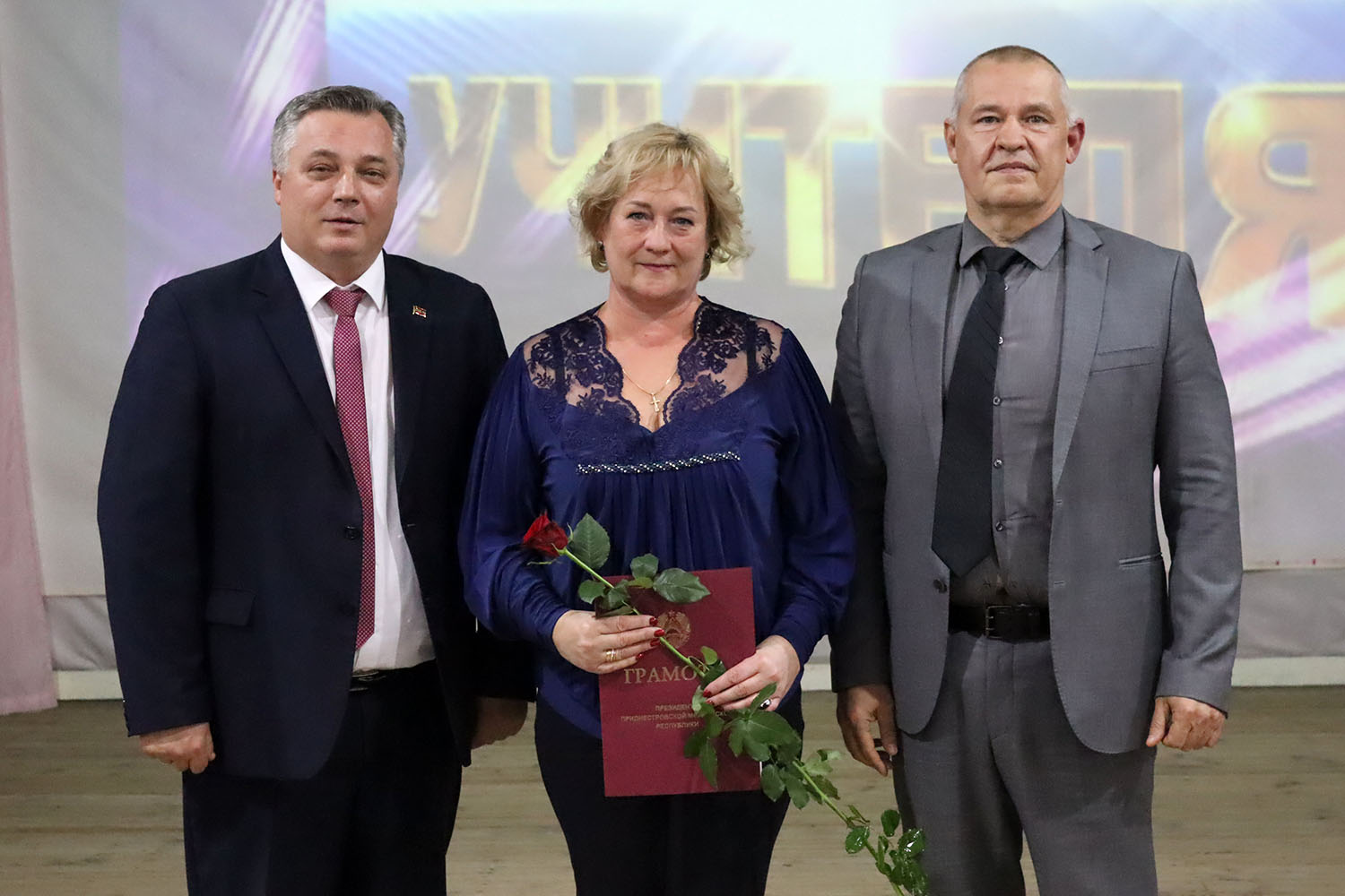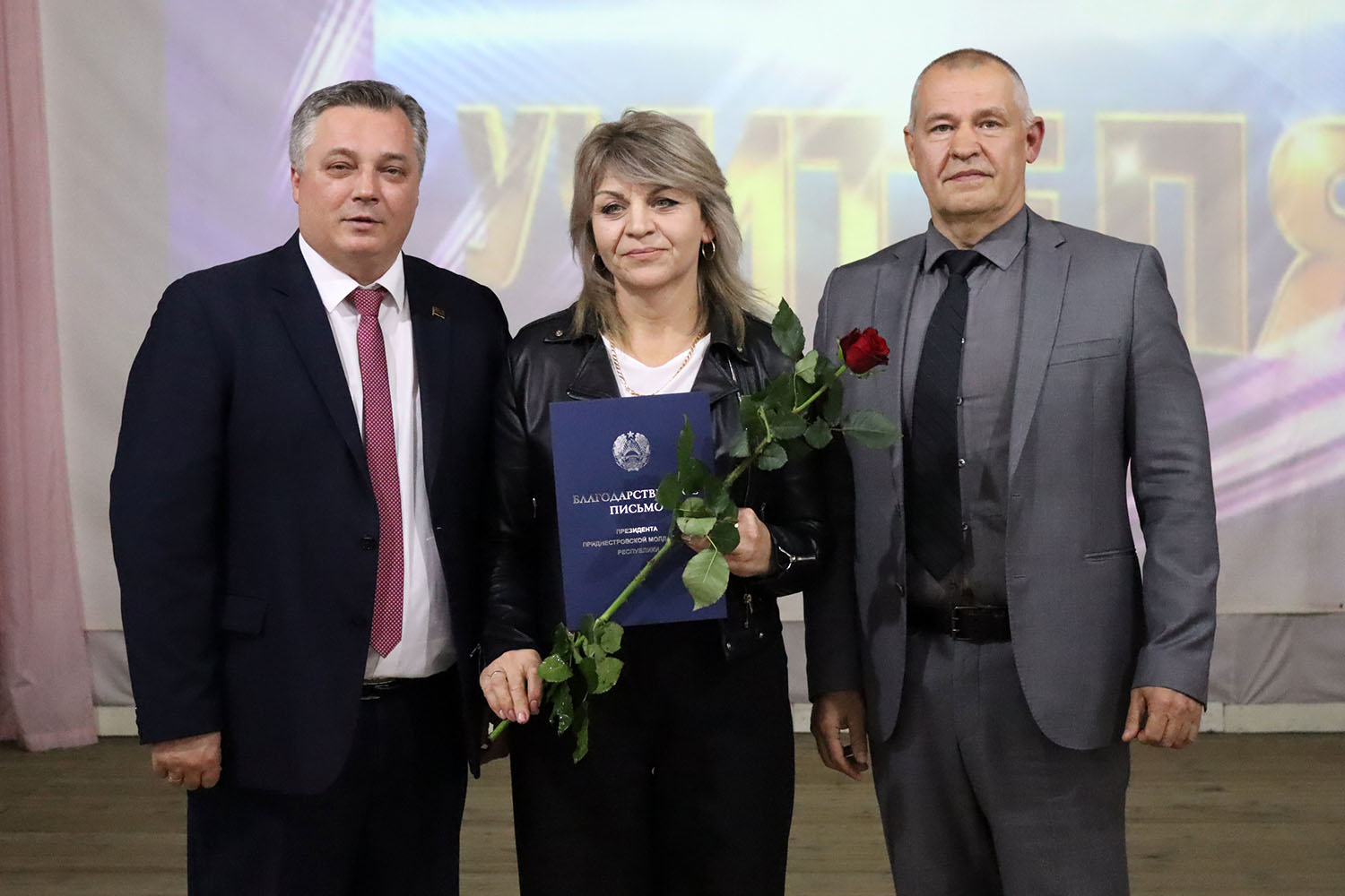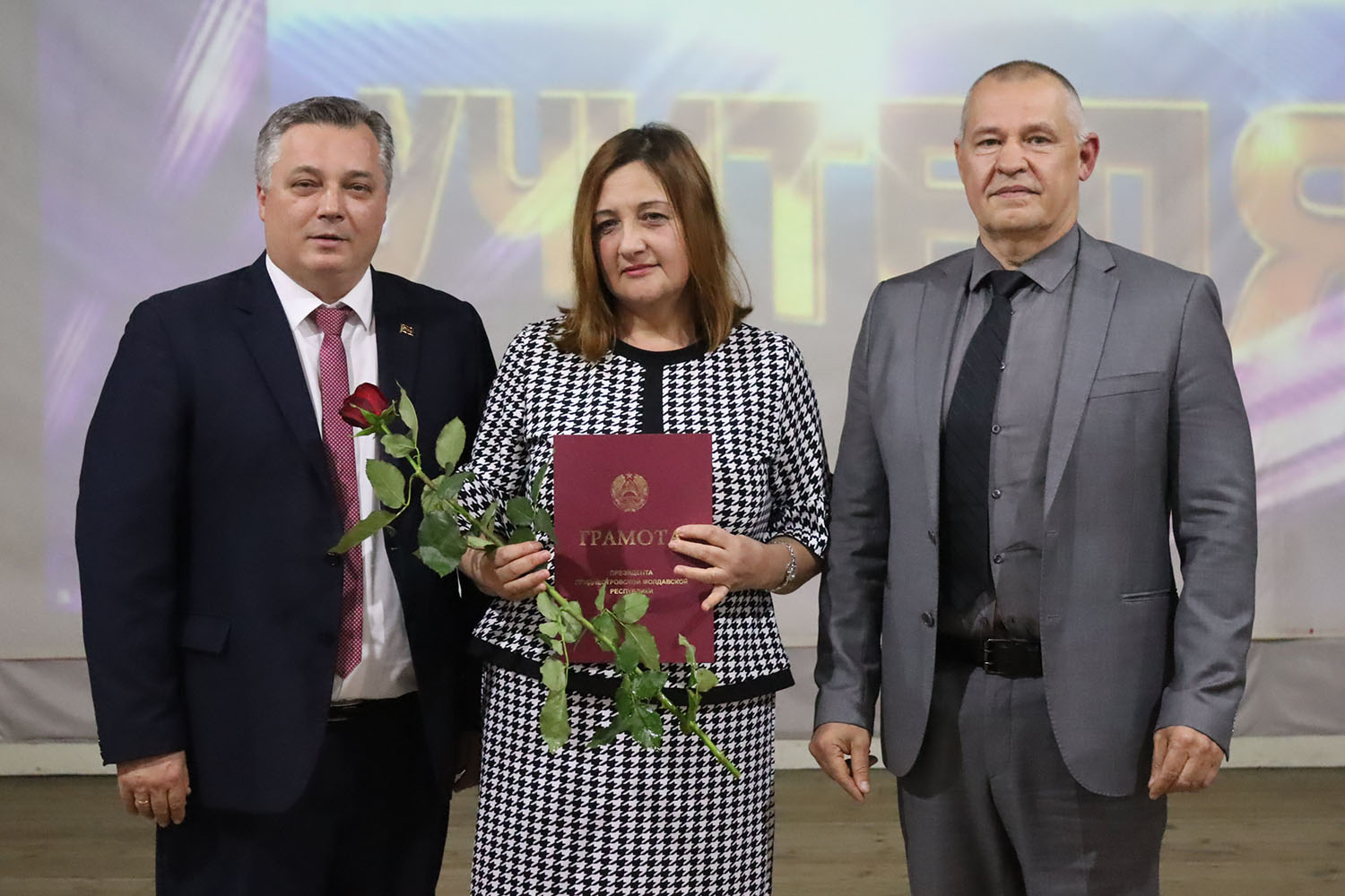 Поздравили педагогов с праздником в этот день глава Государственной администрации Дубоссарского района и города Дубоссары Руслан Чабан, председатель Совета народных депутатов Дубоссарского района и города Дубоссары Александр Коломыцев, депутат Верховного Совета Приднестровской Молдавской Республики Борис Герман, председатель районного комитета профсоюза работников народного образования Дубоссарского района и города Дубоссары Наталья Логина.