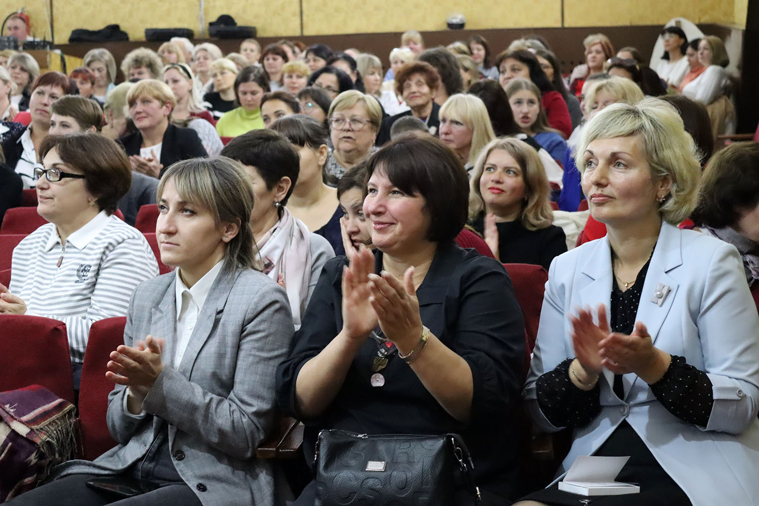 Присутствующие в зале с особыми эмоциями смотрели видеоролики под названиями «Система образования за 35 лет» и «Наши достижения».