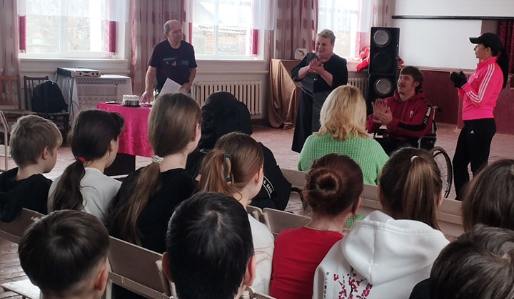 «Денис — выпускник 2010 года. До 10 класса он обучался на дому. Затем он проявил желание посещать школу. Несмотря на погоду: снег, дождь, гололед он приходил на уроки. Я, как классный руководитель, в таких случаях говорила ему остаться дома. Но Денис каждый раз проявлял характер и приходил на занятия. Он человек с железной волей. Мы организовали эту встречу, чтобы ребята узнали, каким был его путь за это время. Чтобы он был для них примером. Денис — гордость нашей школы!».