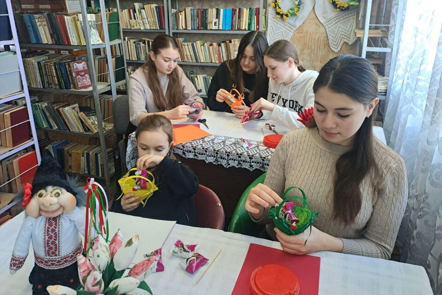 Участники Образцового коллектива ДПТ «Золушка» (руководитель О. Кудык) собрались в творческой мастерской, которая прошла в библиотеке села Дзержинское.