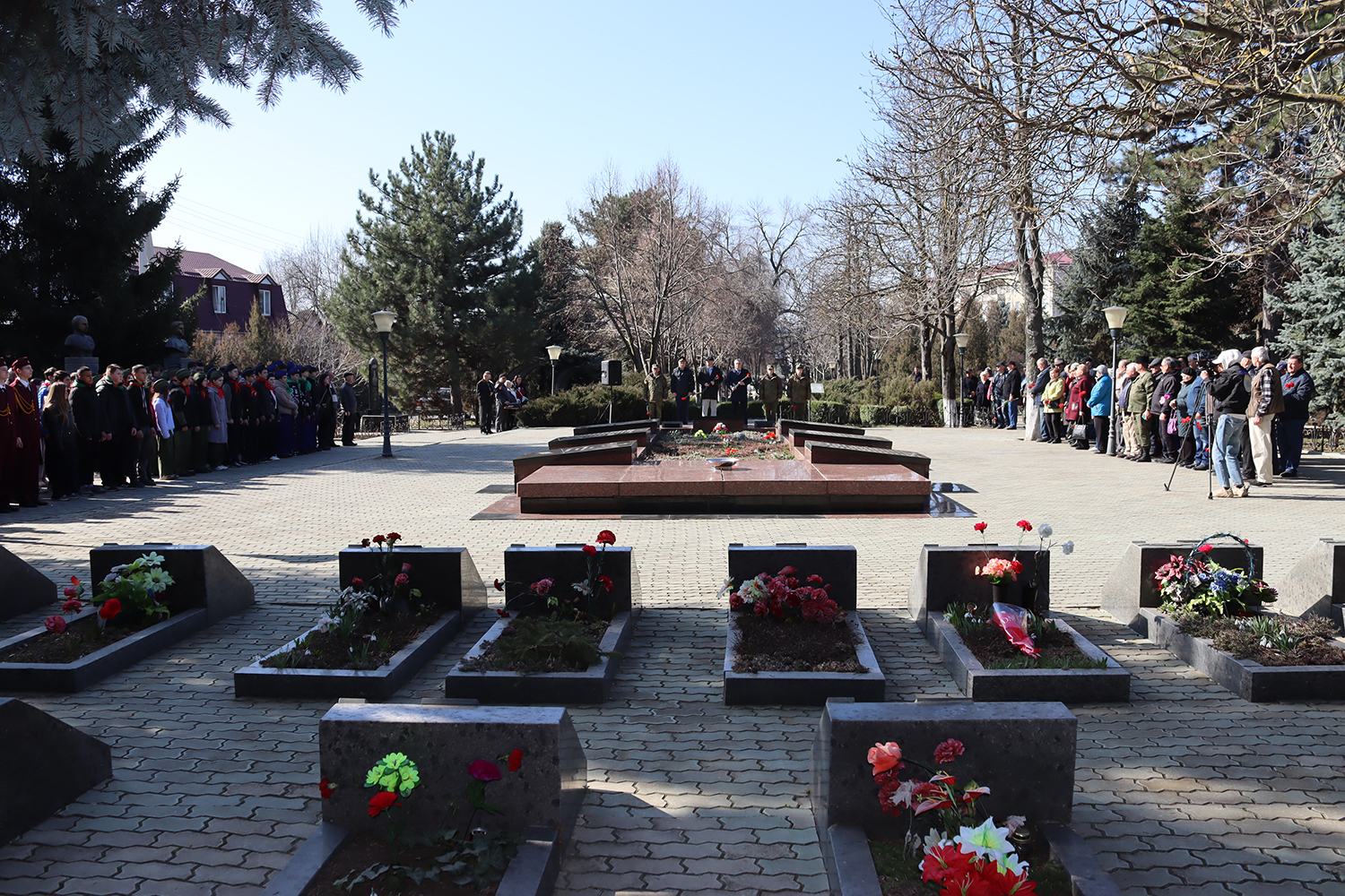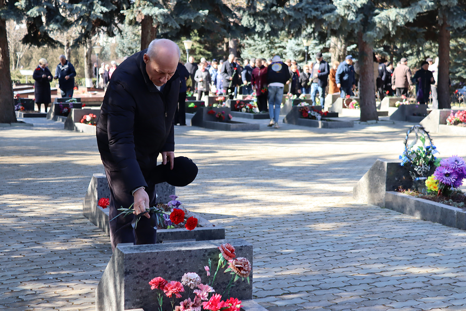 Участники церемониала почтили память защитников республики минутой молчания и возложили цветы к их могилам.