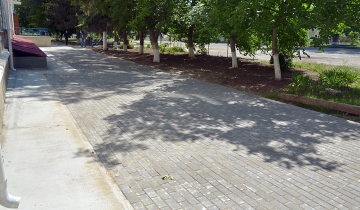 В гимназии, в школах № 2, № 3, № 4, № 5, № 7, в школах сел Гармацкое и Цыбулевка благоустроены территории, они вымощены новой тротуарной плиткой.