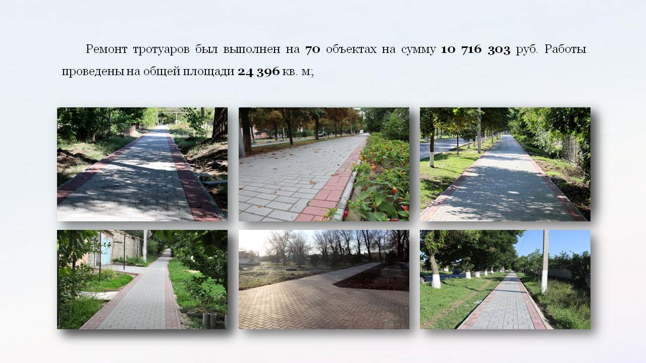 Выполнен ремонт тротуаров на 70-ти участках.