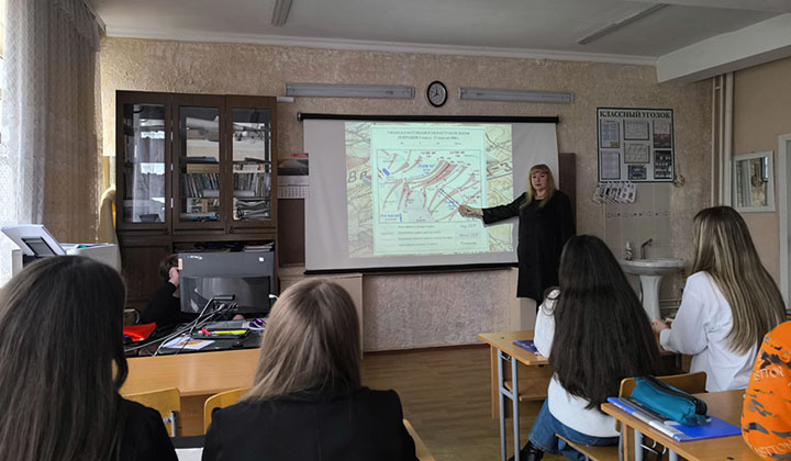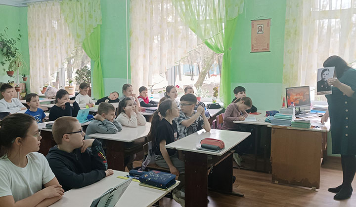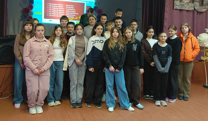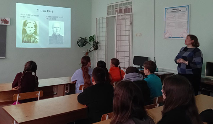 На уроках учащимся рассказывали об одной из самых значимых страниц в истории — периоде Великой Отечественной войны и освобождении края от немецко-румынских оккупантов.
