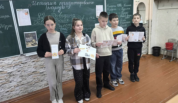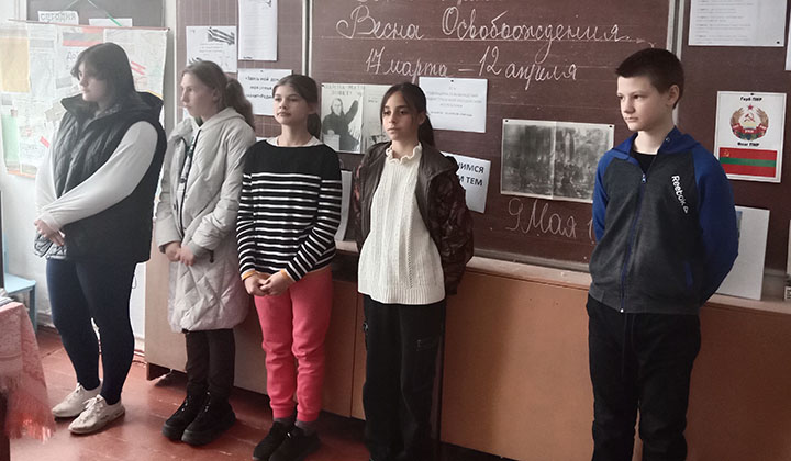 Педагоги напомнили школьникам, что освобождение Дубоссарского района советскими войсками началось в апреле 1944 года. 12 апреля того же года был освобождён город Дубоссары. В боях за его освобождение города погиб 81 советский воин — их останки покоятся в братской могиле на Мемориале Воинской Славы. Полностью Дубоссарский район был освобожден летом 1944 года.