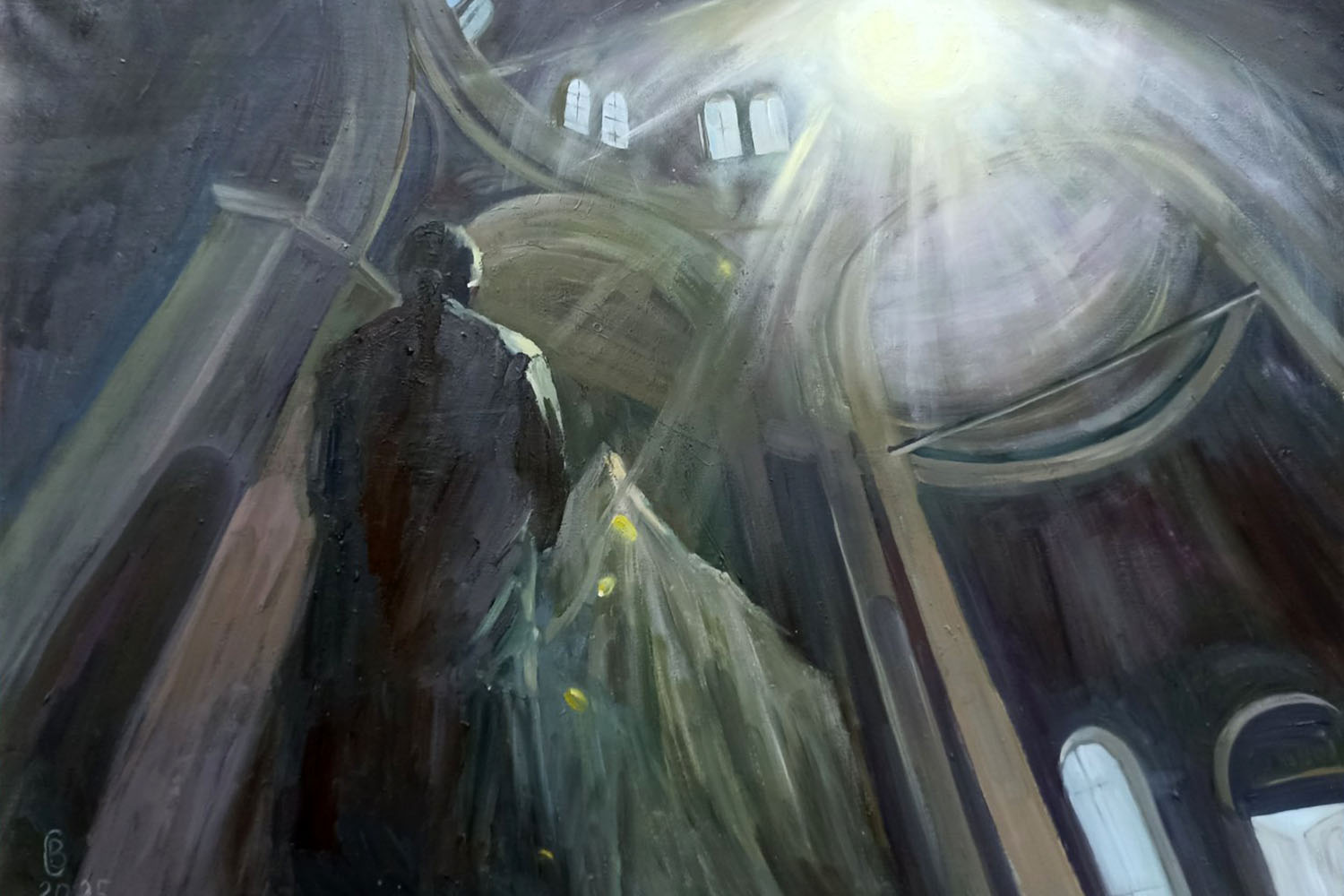 «Через форму, свет и содержание художник открывает миру свою душу. В работе «Алые зёрна тишины» я размышляю о времени, знаниях и предназначении человека. Каждое зерно — как маленькая искра, которую мы передаём дальше. Эта работа участвовала в международных выставках, и мне хотелось представить её дубоссарскому зрителю».