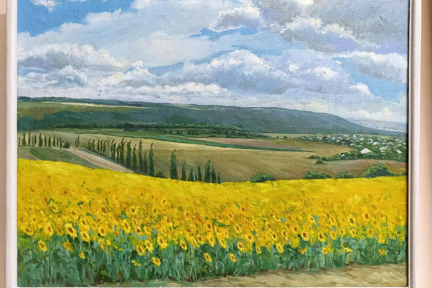 «Мы организуем выставки не в первый раз: раньше объединялись три–четыре художника, а в этом году нас уже семь. Мы все — и художники, и преподаватели, и хотели показать, как удаётся совмещать работу и творчество. Наш край очень красив, и через пейзажи мы стремимся передать красоту Приднестровья. В прошлом году меня особенно вдохновило пшеничное поле у спуска к селу Гояны — так появилась работа «Под облаками».