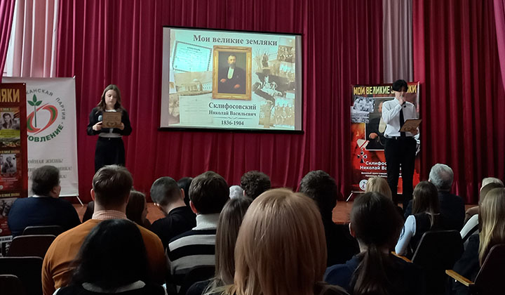 В дубоссарской гимназии № 1 прошел информационный час о выдающемся враче и ученом Николае Склифосовском (1836–1904), уроженце приднестровской земли. Встреча, посвященная 190-летию со дня рождения Склифосовского, стала частью республиканского проекта «Мои великие земляки», который реализует РПП «Обновление».