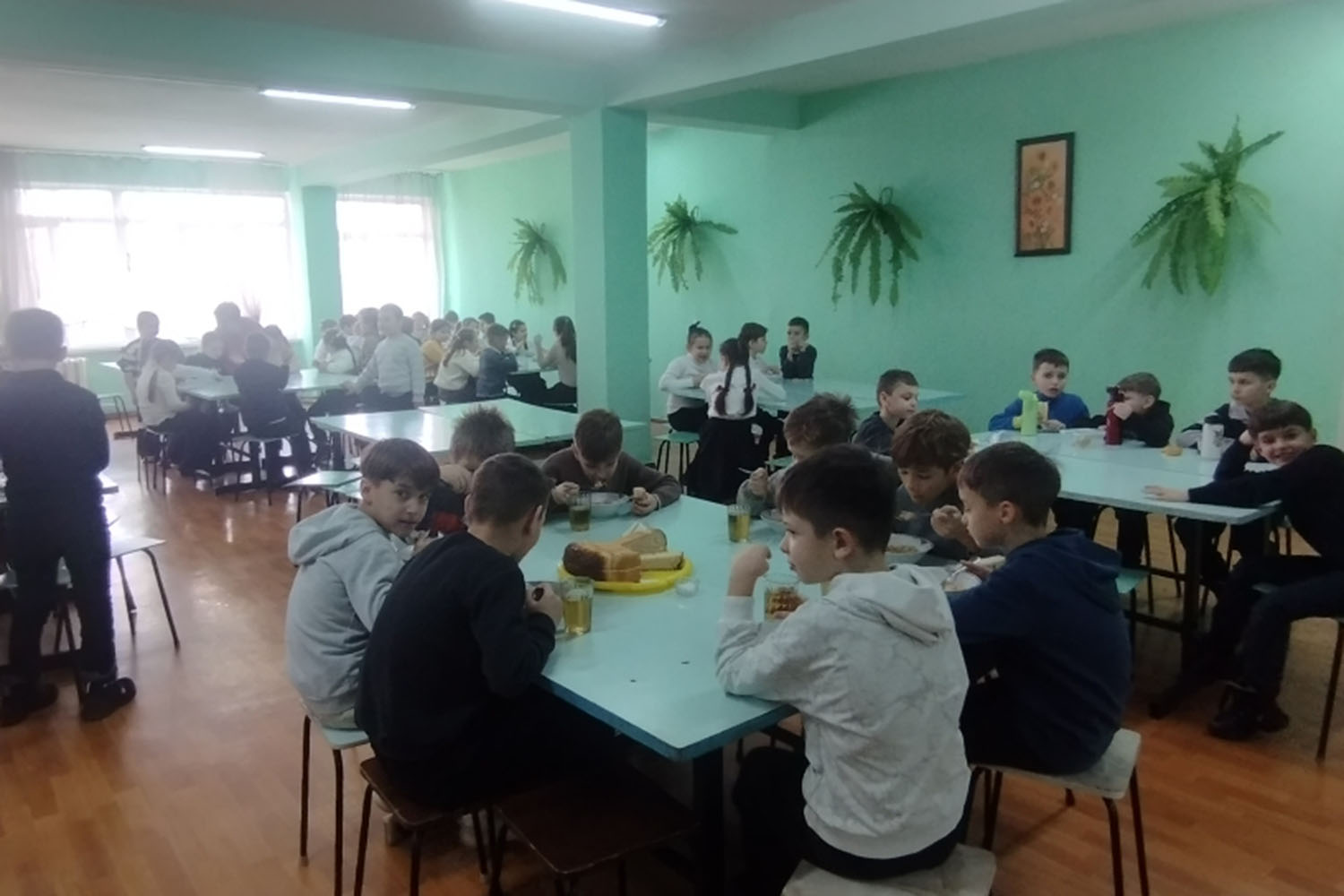 Нужно отметить, что в школах города и сел района горячее питание получают 1472 школьника. 676 ребят обедают бесплатно. В течение недели ребятам предлагают блюда с мясом, рыбой и молочной продукцией.