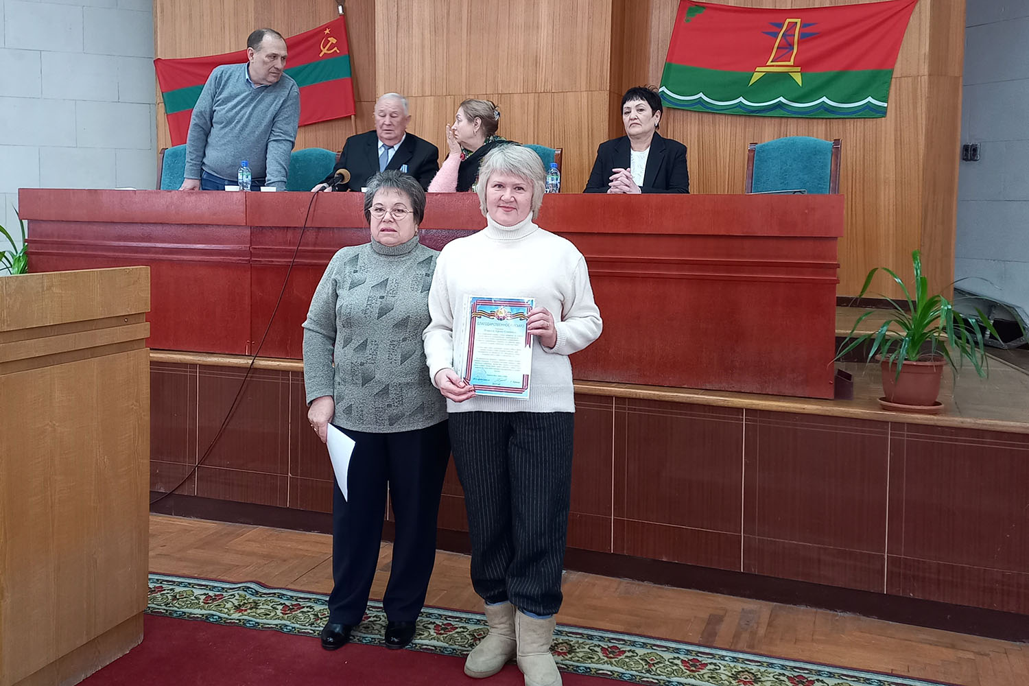 «От имени и по поручению главы госадминистрации Руслана Ивановича Чабан выражаю Совету ветеранов благодарность за работу. Вы для нас являетесь всегда примером беззаветного служения Родине, народу, Приднестровью. Мы до сих пор пользуемся теми благами, которые благодаря вам были созданы после окончания Великой Отечественной войны. Это все плоды вашего труда, огромное вам за это спасибо. Главная задача государственной администрации – это сохранить, приумножить все то, что создавалось вами. Вы участвуете в патриотическом воспитании нашего подрастающего поколения, чтобы наша молодежь знала истину о Великой Отечественной войне, о людях, кто защищал нашу Родину и восстанавливал ее. Огромная вам благодарность за это».